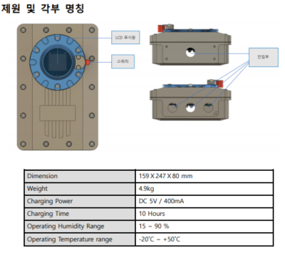 - 작업 현장 내 거치하여 운용할 수 있으며 가스농도가 설정된 관리범위를 벗어나는 경우